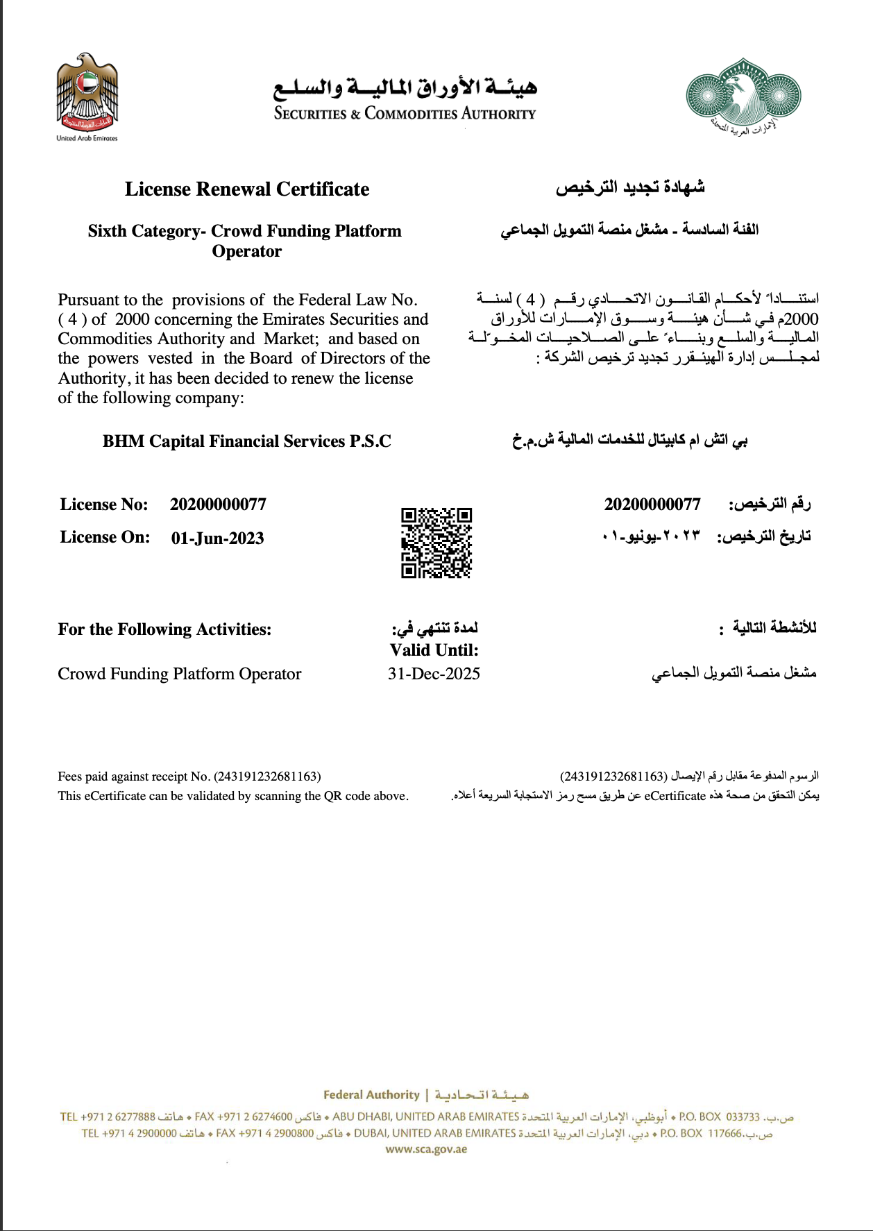 كما نحثكم على الإبلاغ الفوري عن أي نشاط مشبوه إلى الجهات التنظيمية المختصة في الدولة.